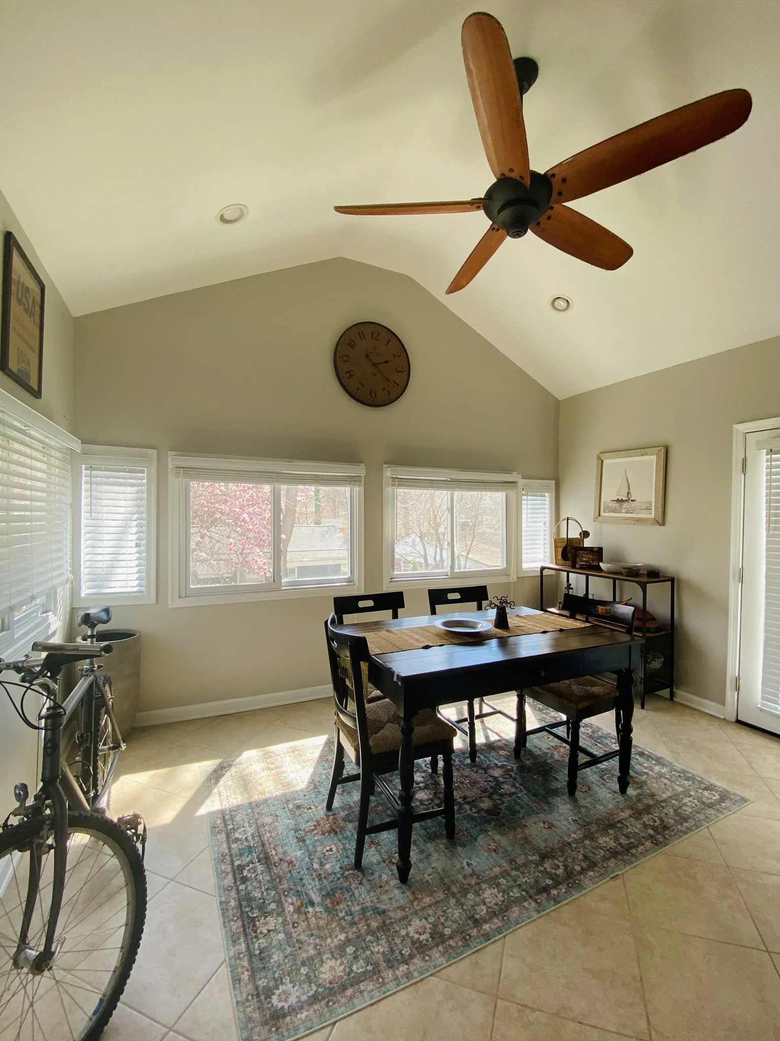 The re-visioned dining room is south-facing to the yard. During the springtime, the neighbor’s magnolia tree has a full bloom and creates an exceptional view.